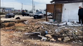 У женщин, которые находятся внутри здания, бензин, солярка и газовый баллон. Чувствуется сильный запах, даже когда стоишь снаружи.
