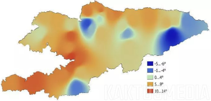 • в Чуйской, Иссык-Кульской - до -5 °C;