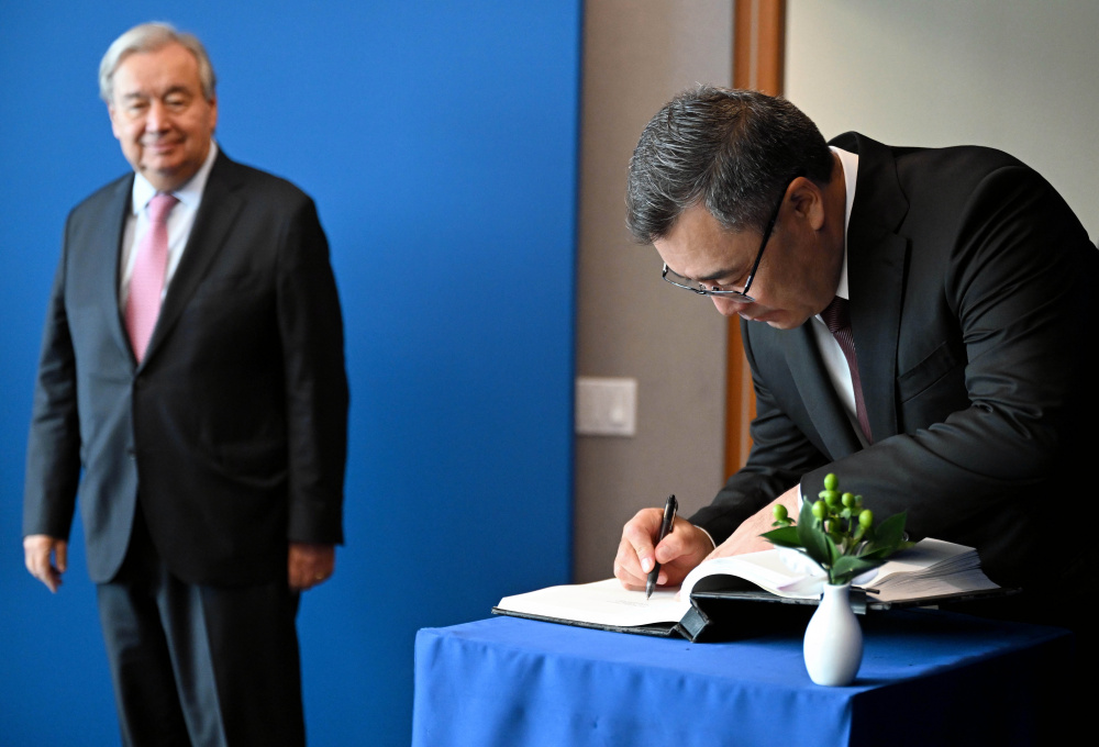 Также президент Кыргызстана встретился с генеральным секретарем ООН Антониу Гутерришем. Перед началом переговоров глава государства оставил запись в Книге почетных посетителей ООН.