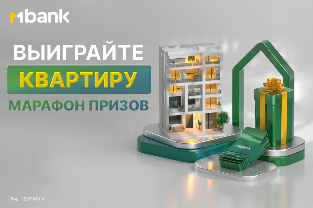 MBANK объявляет о начале акции "Марафон призов"! Это ваш шанс превратить оплату интернета, пополнение счета, покупку билета и другое - в реальную возможность получить ключи от новой квартиры в Бишкеке и выиграть миллионы сомов.