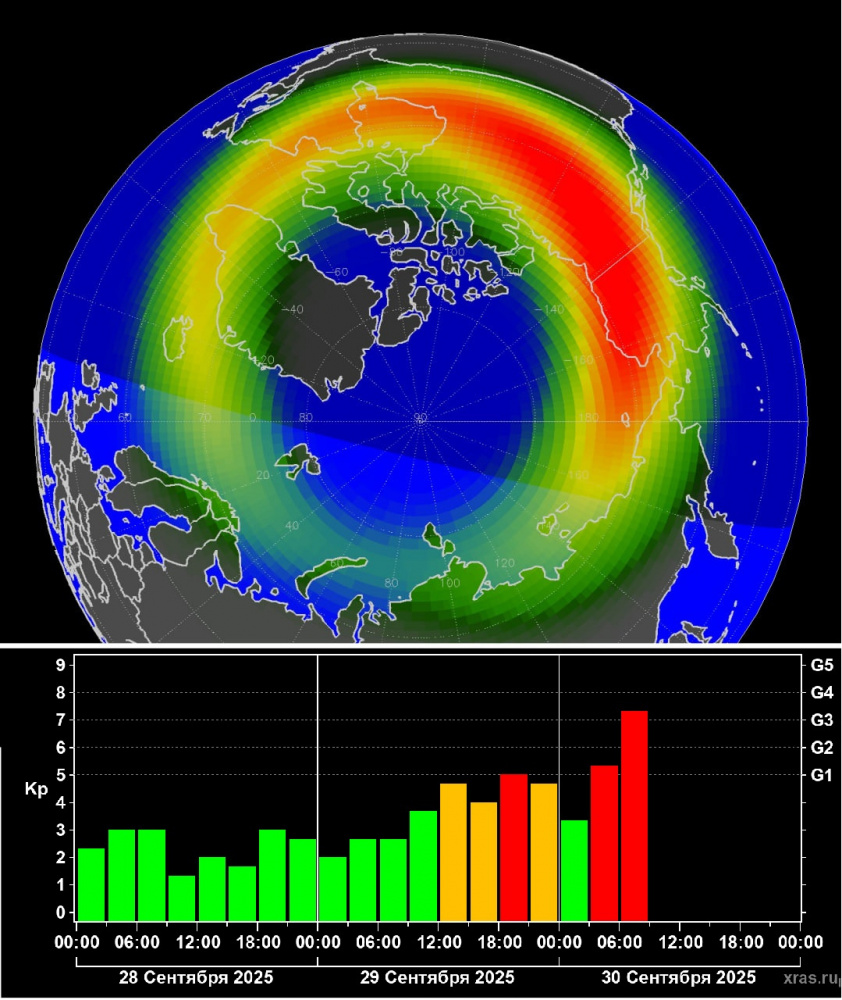 На Землю обрушилась самая сильная за три месяца магнитная буря. Индекс геомагнитной активности Kp вырос до уровня 7.33. Показатель соответствует сильной магнитной буре категории G3 по пятибалльной шкале, сообщает пресс-служба лаборатории солнечной астрономии Института космических исследований и Института солнечно-земной физики Российской академии наук (ИКИ и ИСЗФ РАН).
