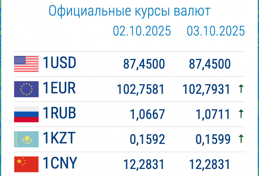 Курс иностранной валюты Нацбанка Кыргызстана на 3 октября выглядит так: