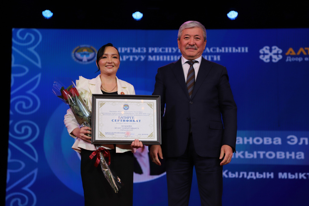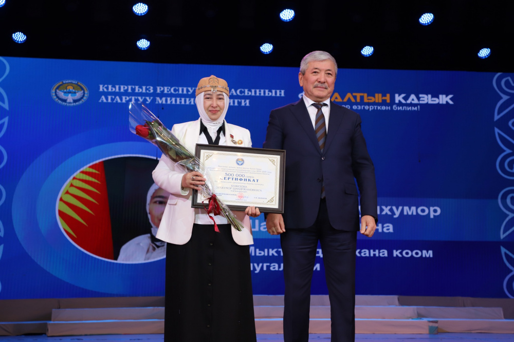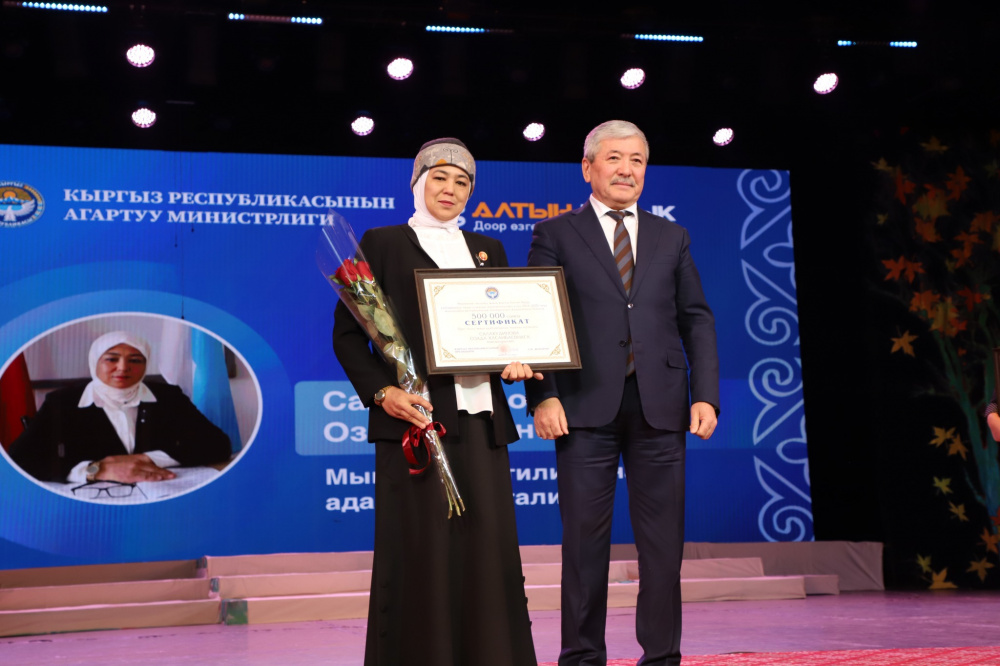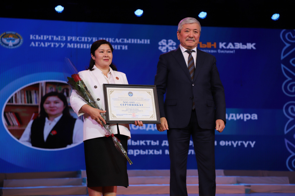Обладателем Гран-при конкурса стала Элзат Асанова - учитель кыргызского языка и литературы средней школы имени К. Уметалиева №22 села Долон Тюпского района Иссык-Кульской области.