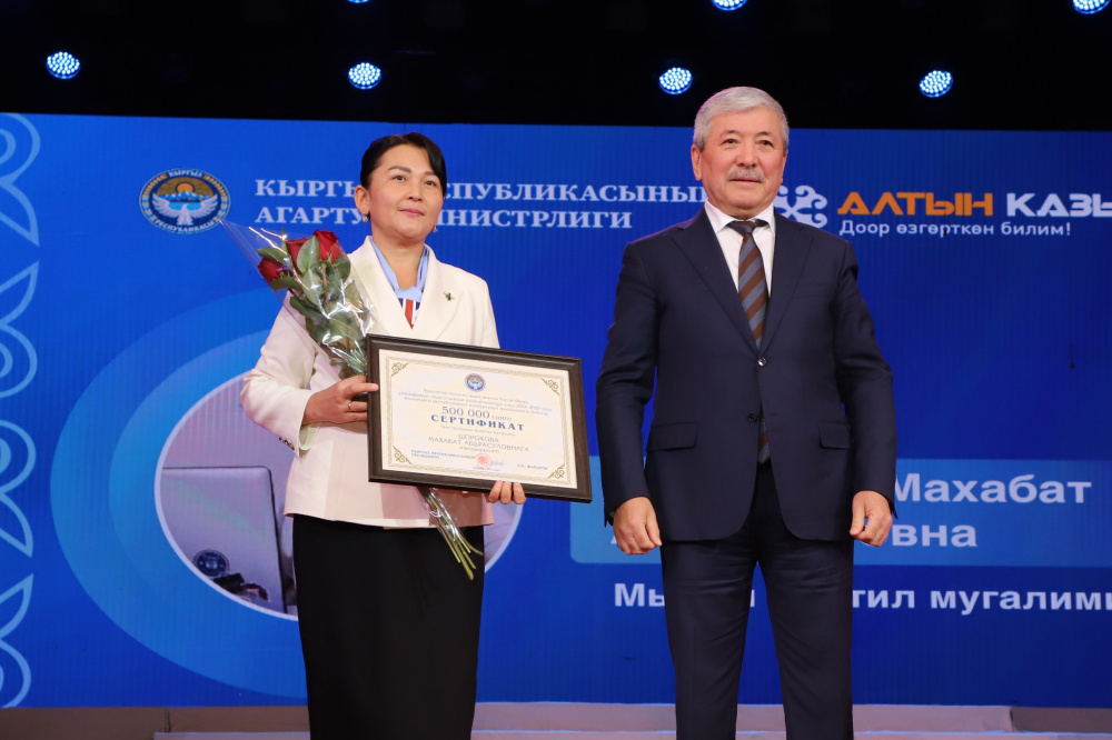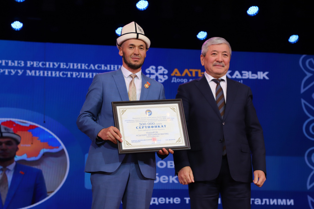 Кроме того, глава кабмина вручил денежные премии по 500 тысяч сомов десяти педагогам, признанным лучшими в своих предметных категориях.