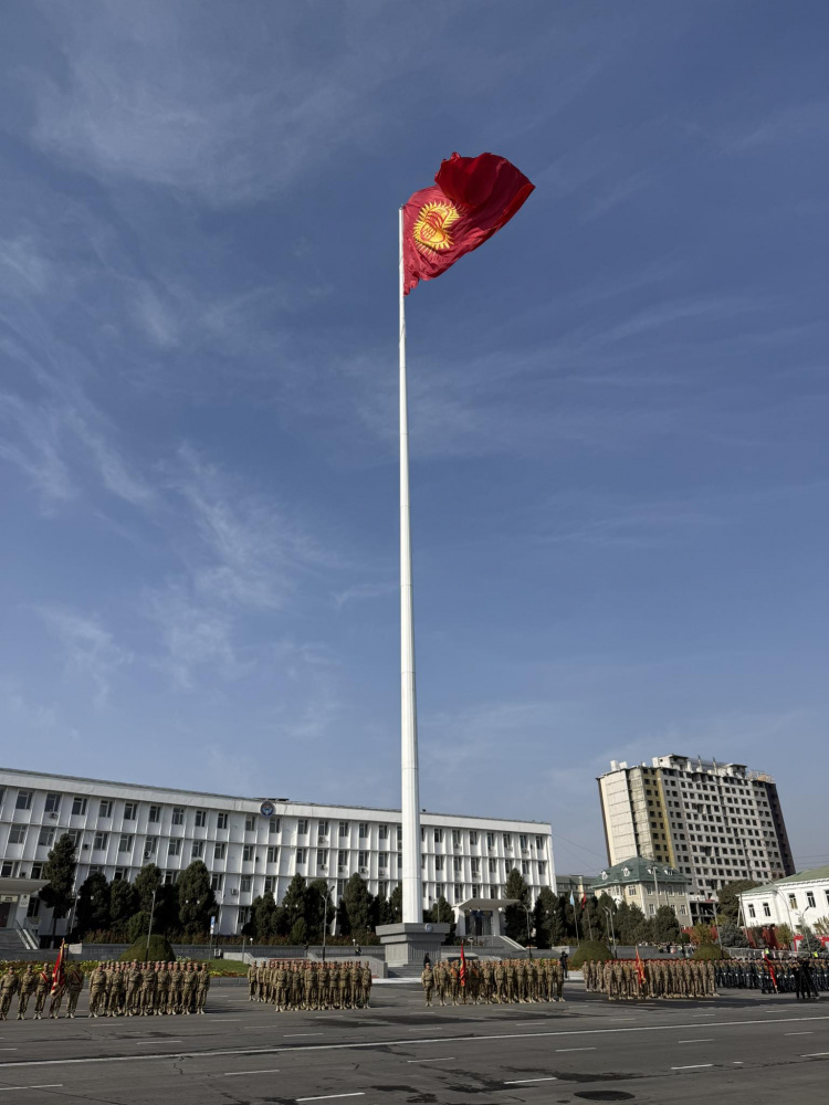 "Государственный флаг Кыргызстана - это священный символ независимости, единства и достоинства народа. Красный цвет - знак мужества, түндүк в центре солнца - символ мира, семейного очага и единства. Пусть наш флаг всегда развивается высоко, призывая к сплоченности и гармонии", - заявил Жапаров.