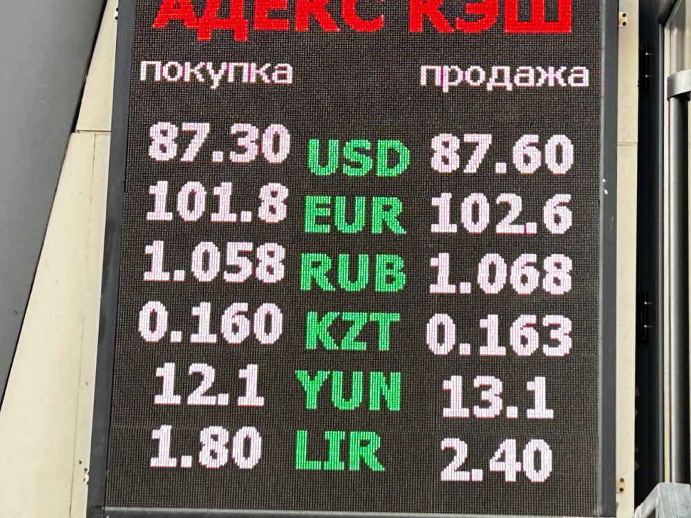 Рубль также подешевел. Цена его покупки - 1,05-1,06 сома, продажи - 1,06-1,07.
