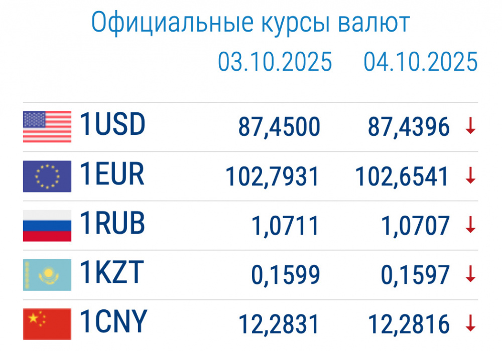 Курс иностранной валюты Нацбанка Кыргызстана на 6 октября выглядит следующим образом: