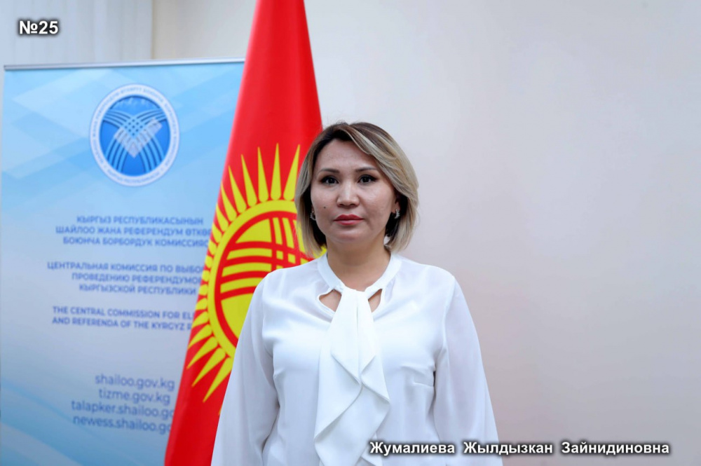 - Жумалиева Жылдызкан Зайнидиновна. Доцент НИУ КЭУ им. М. Рыскулбекова. Родилась 28.12.1979 года.Зарегистрирована кандидатом в депутаты.