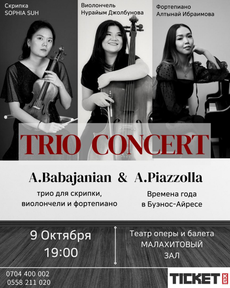 Концерт классической музыки 9 октября в 19:00 в Малахитовом зале Театра оперы и балета им. Абдыласа Малдыбаева.