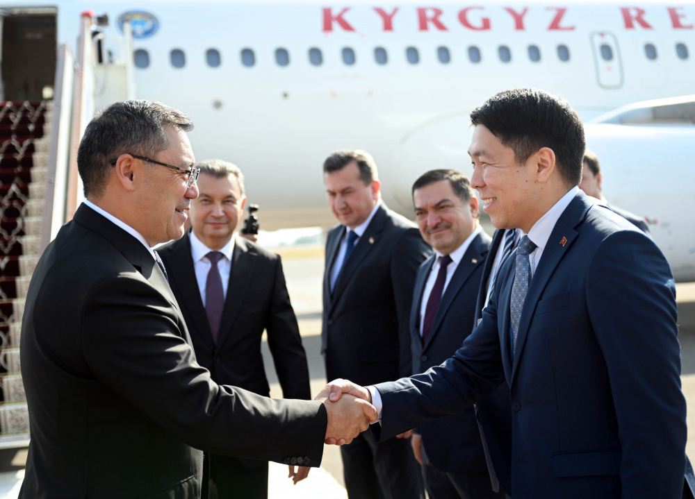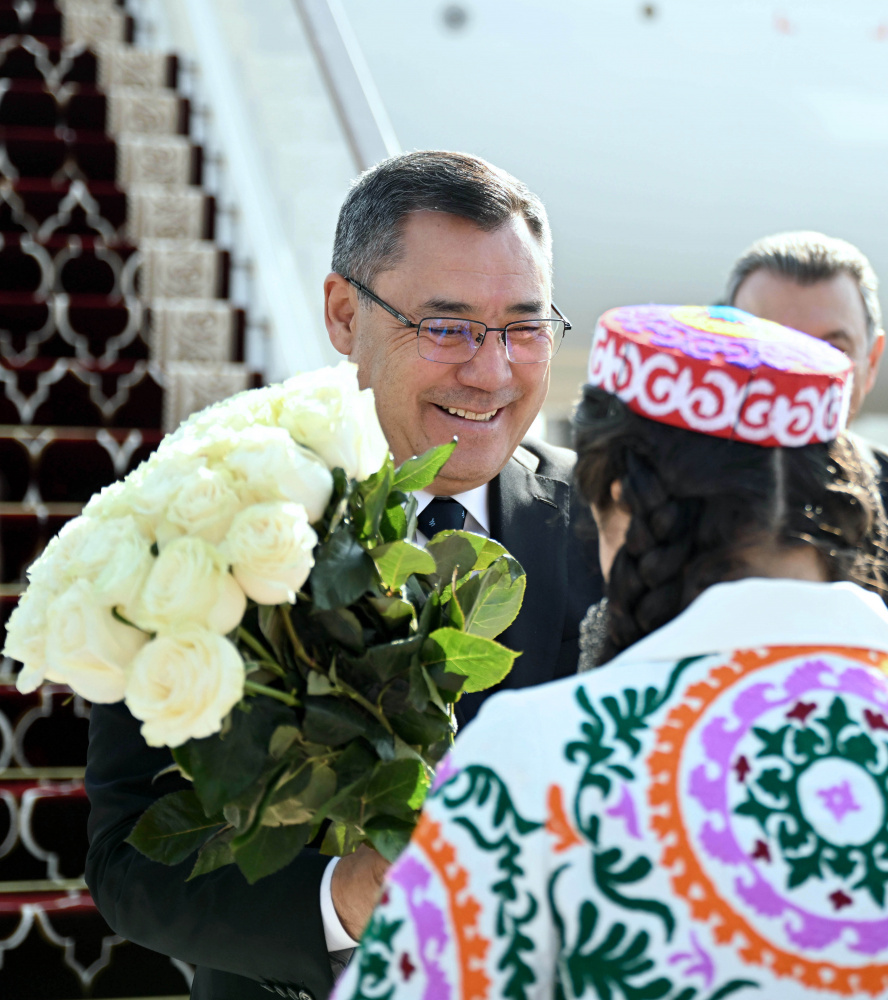 Садыр Жапаров прилетел в Таджикистан. Как его встретили (фоторепортаж)