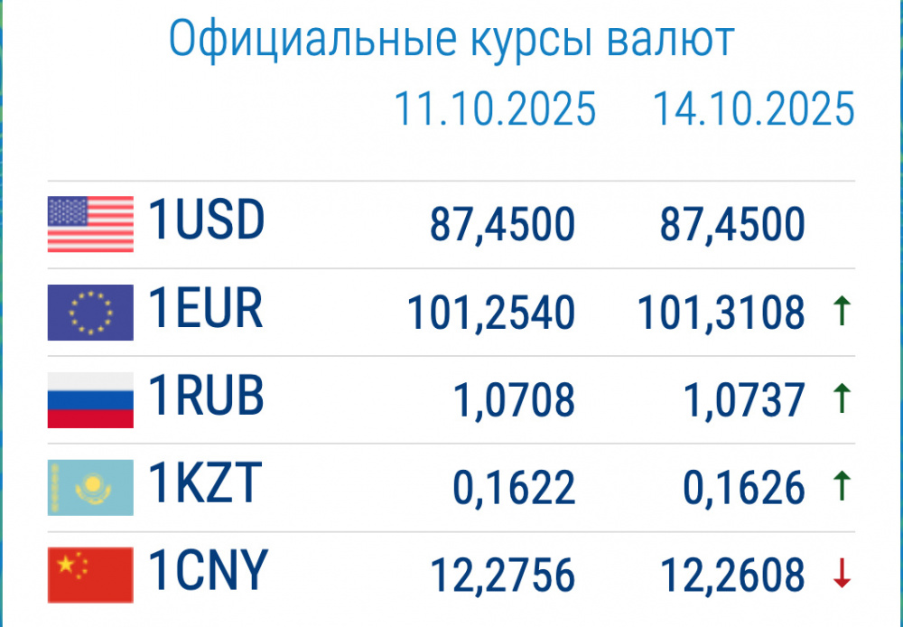 Курс иностранной валюты Нацбанка Кыргызстана на 14 октября выглядит следующим образом:
