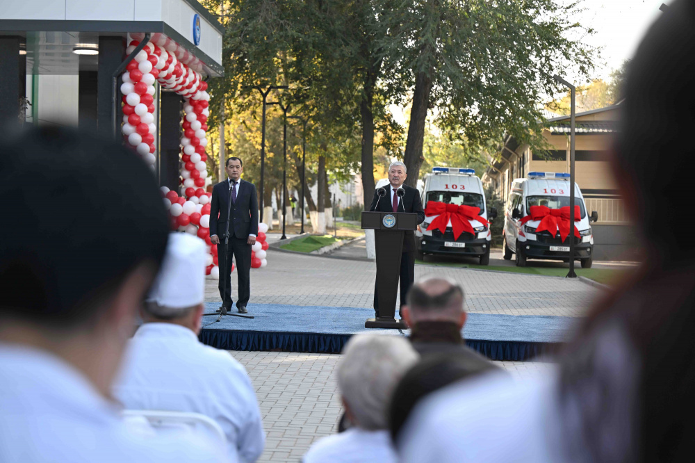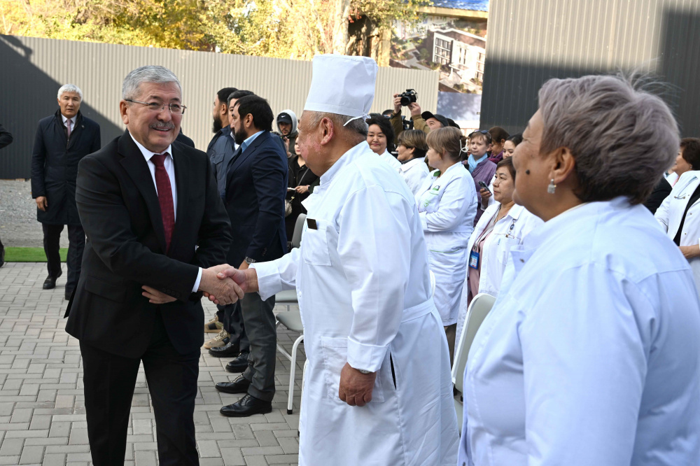 В церемонии открытия нового детского отделения приняли участие председатель кабинета министров Кыргызской Республики Адылбек Касымалиев, министр здравоохранения Эркин Чечейбаев, а также главный врач больницы Гулжигит Аалиев.