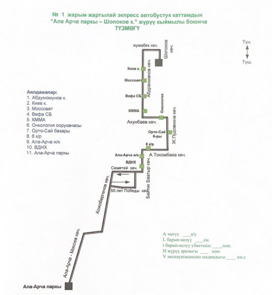 Изменен маршрут автобуса №1, следующего из парка "Ала-Арча" до ул. Шопокова.