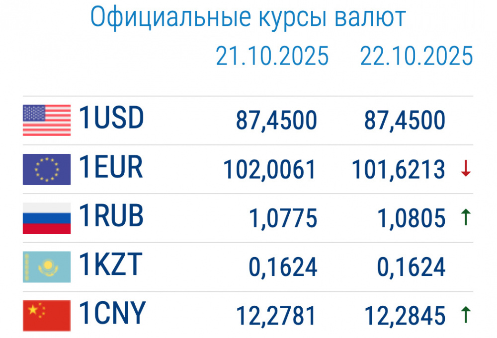 Курс иностранной валюты Нацбанка Кыргызстана на 22 октября выглядит таким образом: