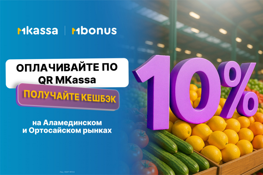 MBANK вышел на Аламединский рынок с выгодным предложением для покупателей. Теперь, расплачиваясь на Аламединском рынке, можно вернуть себе 10% кешбэка от суммы покупки. Главное условие - оплата через QR-код MKassa в мобильном приложении MBANK.