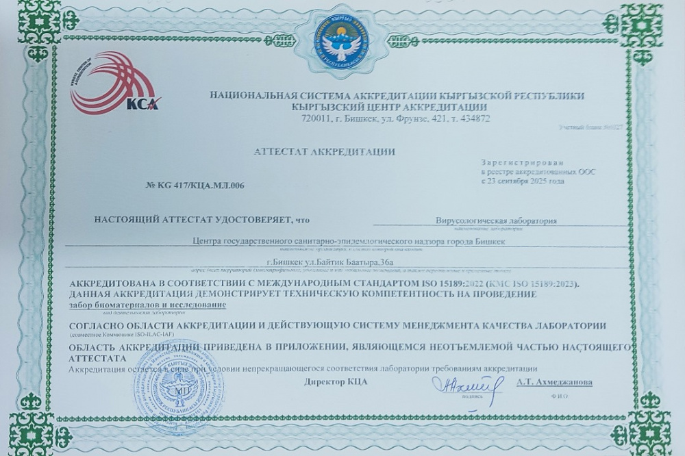 Как уточняется, вирусологическая лаборатория ЦГСЭН официально аккредитована в кыргызском центре аккредитации по международному стандарту ISO.