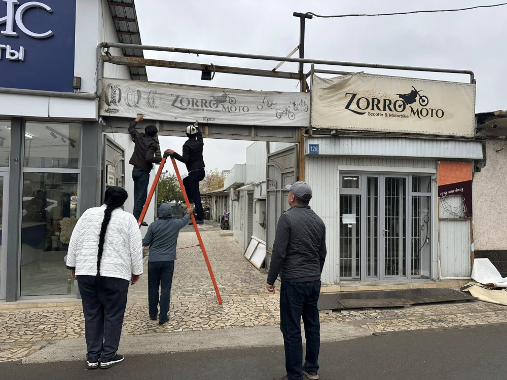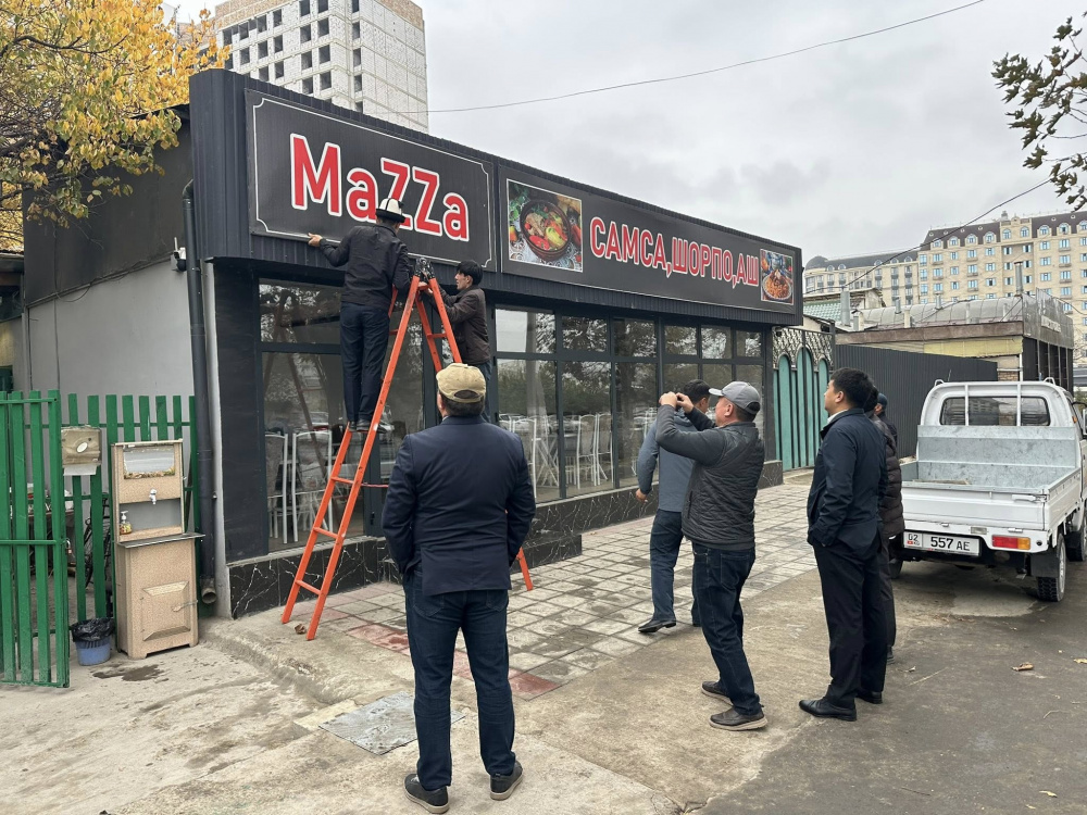 В рамках рейда была проведена разъяснительная работа по вопросу, поднятому накануне мэром, отмечена необходимость написания названий коммерческих объектов на кыргызском языке.