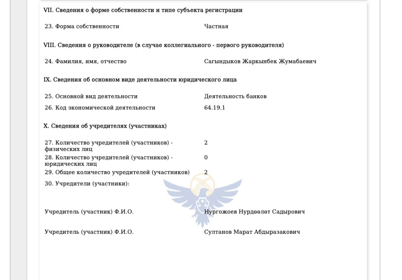 Учредителями недавно созданного в Кыргызстане "Берекет Банка" стали младший сын президента Садыра Жапарова - Нургожоев Нурдөөлөт и бывший спикер Жогорку Кенеша Марат Султанов. Об этом свидетельствуют данные базы Министерства юстиции КР.