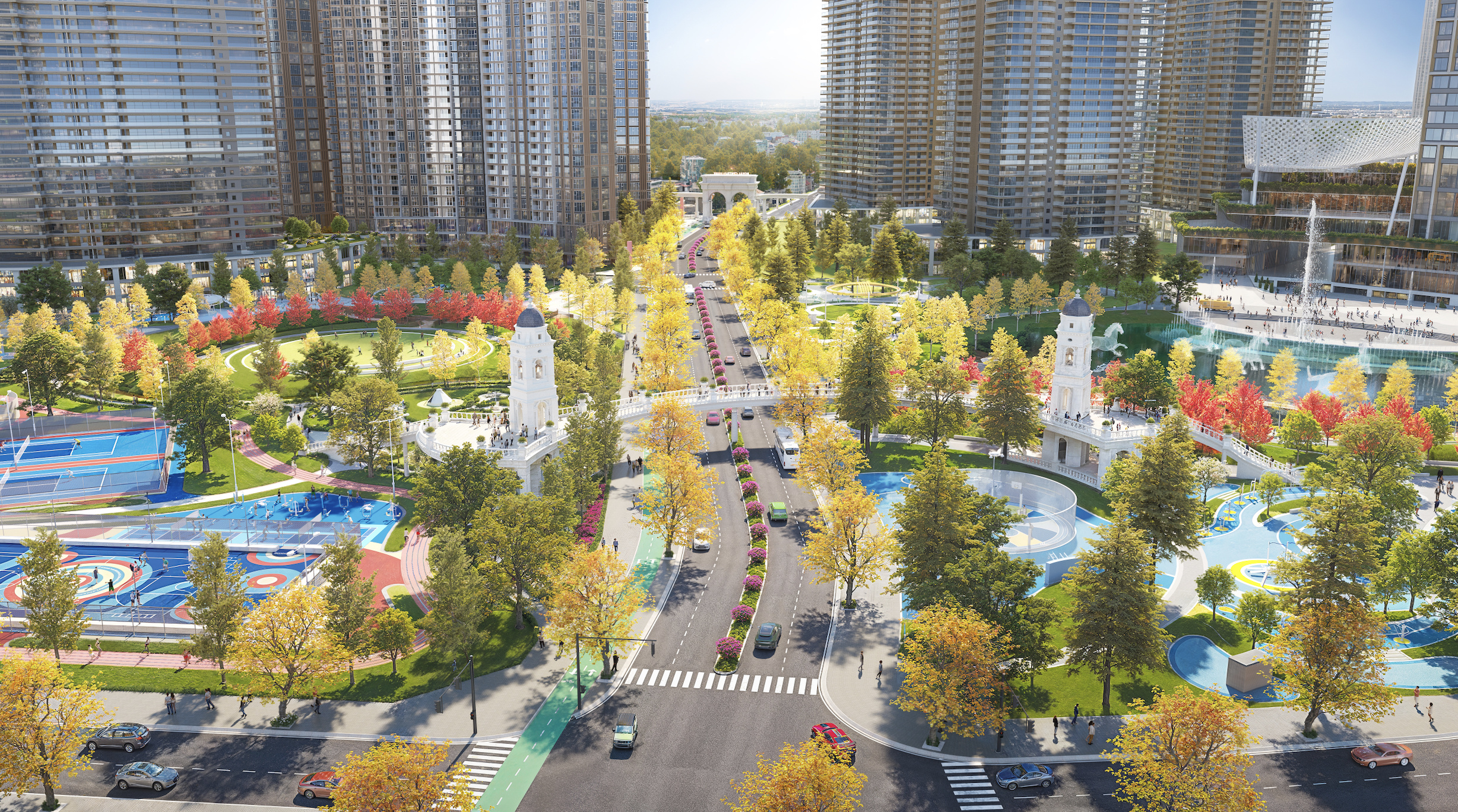 Royal Central Park включает более 24 000 квартир, торговые площади площадью 766 000 м², офисные здания, многоуровневые торговые центры, центральный парк площадью 10 гектаров, а также сеть школ, медицинских учреждений и зон отдыха. Более 70% территории отведено под зеленые насаждения, водные пространства и общественные зоны, обеспечивая баланс между природой и современностью - уникальное преимущество для Бишкека сегодня.