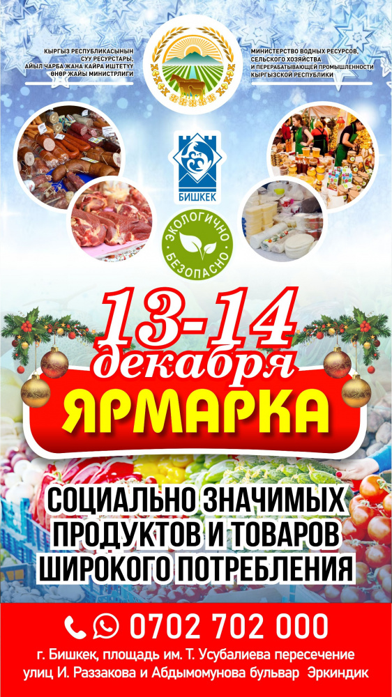 Бишкекчан приглашают на зимние продуктовые ярмарки выходного дня