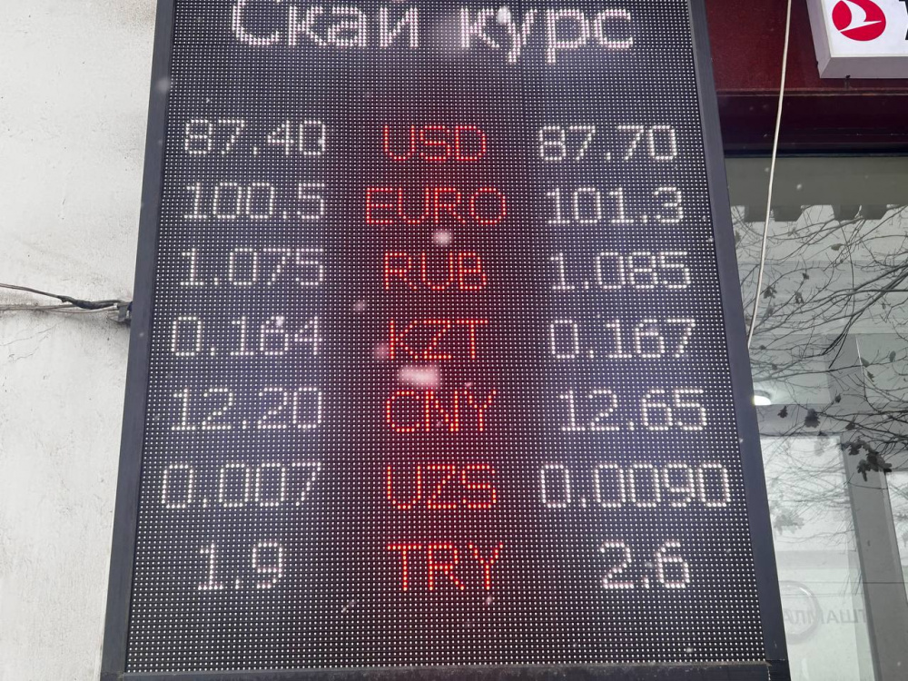 Курс доллара не поменялся: покупка - по 87,4 сома, продажа - по 87,7.