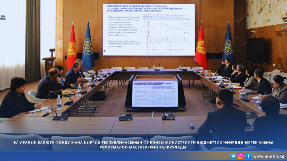 В ходе встречи обсудили вопросы совершенствования условий оплаты труда бюджетной сферы в Кыргызской Республике. Также рассмотрены ключевые аспекты реформирования системы оплаты труда в Кыргызской Республике в увязке с фискальными и макроэкономическими показателями для обеспечения бюджетной устойчивости. При этом учтены цели, поставленные Министерством финансов, по поэтапному повышению заработной платы отдельных работников бюджетной сферы с 2026 года.