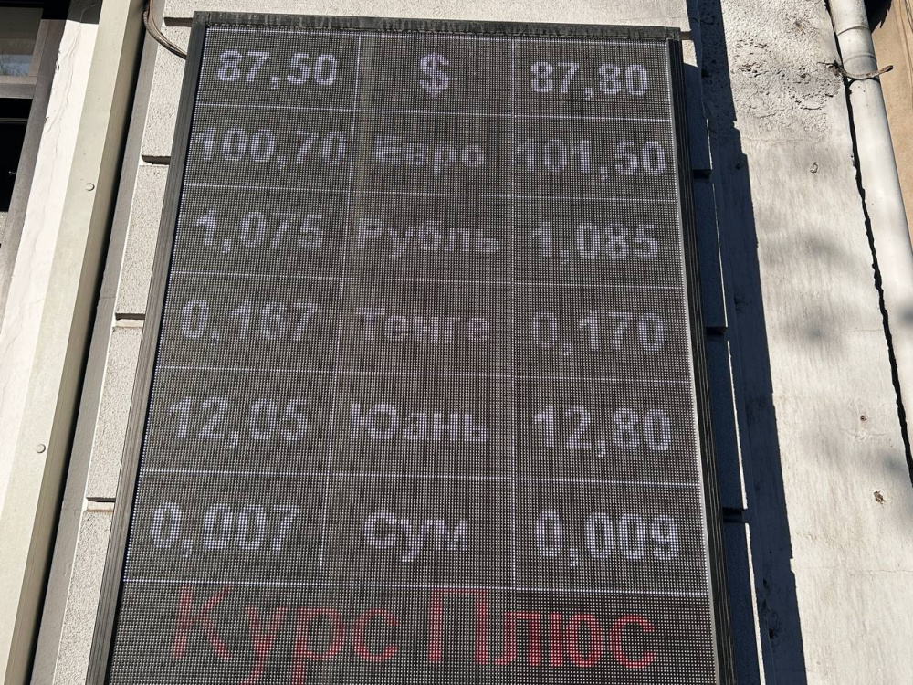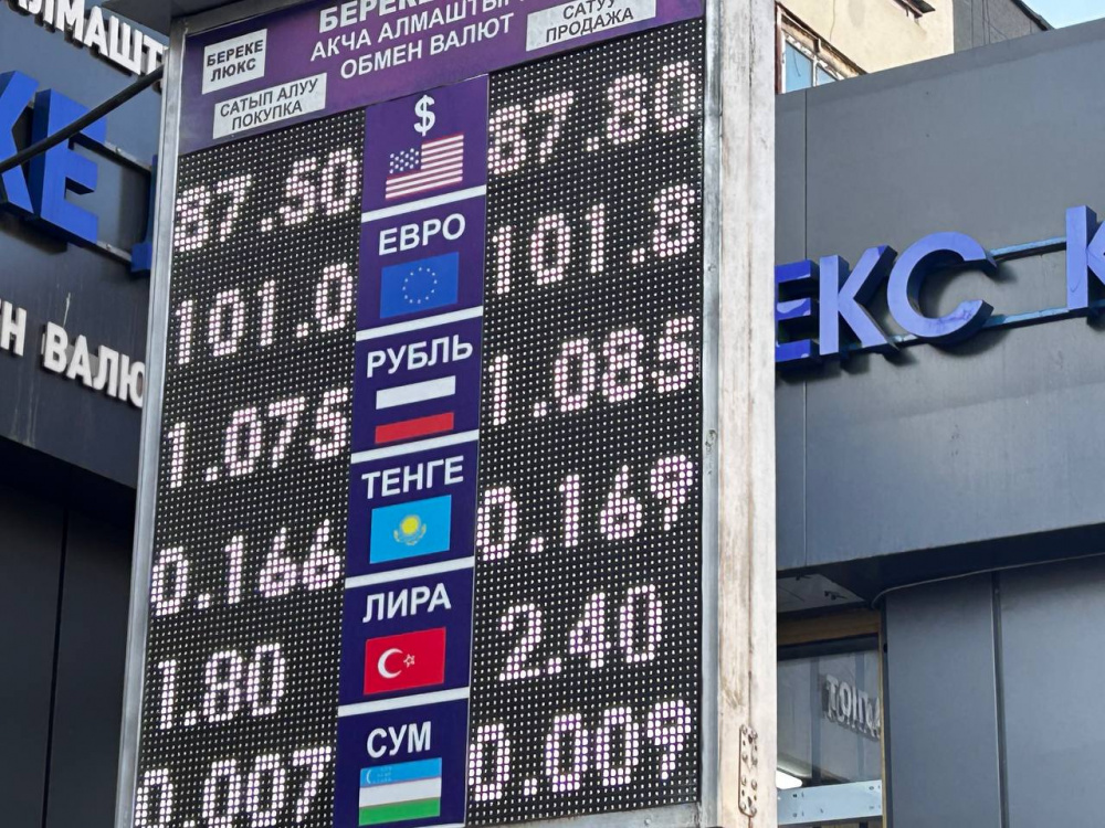 Курс доллара продолжает оставаться стабильным: покупка - по 87,5 сома, продажа - по 87,8.