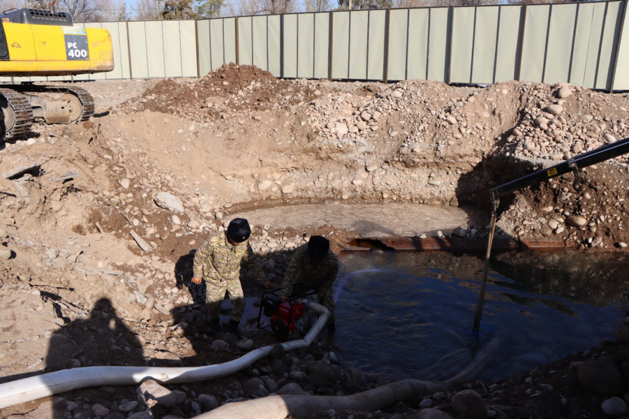 После получения сообщения об аварии сотрудники МП "Бишкекводоканал" и Октябрьского районного отдела МЧС КР выехали на место и всю ночь проводили работы по устранению аварии, которые продолжаются и сейчас.