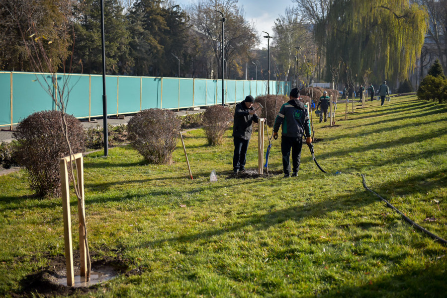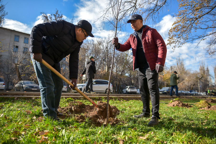 В Бишкеке в рамках осенней кампании по озеленению высажены новые ивы на пересечении проспекта Чуй и улицы Тыныстанова. Как сообщила мэрия, саженцы также появились на улице Саманчина, где высадили клены. Всего за день в столице посадили более 500 деревьев.