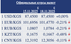 Курс иностранной валюты Нацбанка Кыргызстана на 17 ноября выглядит так: