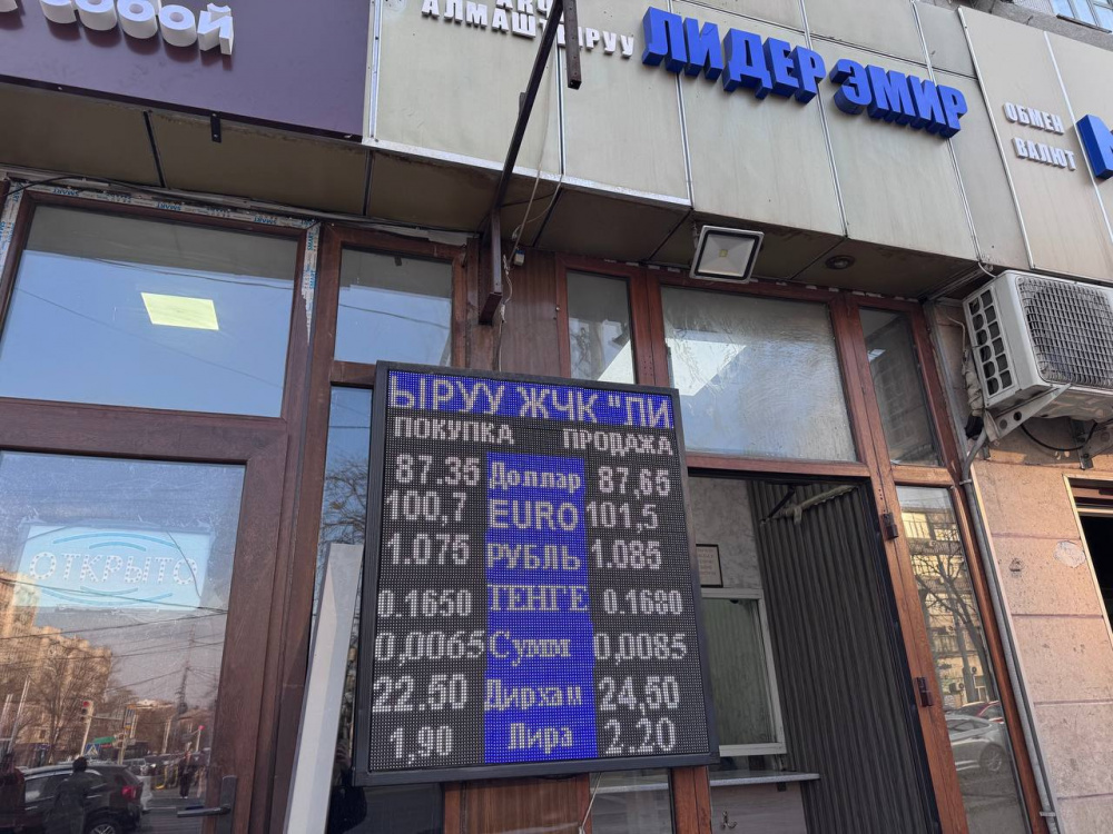 Евро тоже упал в цене. Его покупают по 100,7-101,0 сома, а продают по 101,5-101,8.