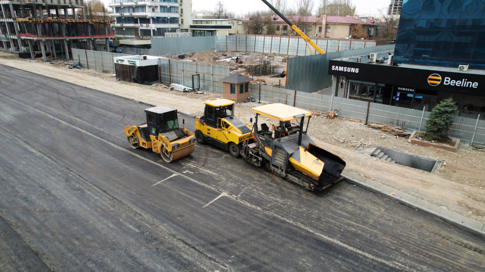 На сегодня на участке пр. Чуй от ул. Абдрахманова до ул. Шопокова уже выполнены ключевые этапы подготовки дорожного полотна. Завершена укладка первого слоя основания (грунт "оптималка"), уложен второй слой - грунт "оптималка" мелкой фракции, обеспечивающий дополнительную прочность и устойчивость покрытия. Кроме того, проведена подготовка поверхности под укладку асфальта и уже уложен первый слой асфальта - ровный, прочный и рассчитанный на высокую нагрузку.