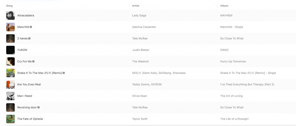 Apple Music составил топ лучших поп-песен 2025 года. На первом месте - песня Леди Гага Abracadabra из альбома Mayhem, который вышел 7 марта.