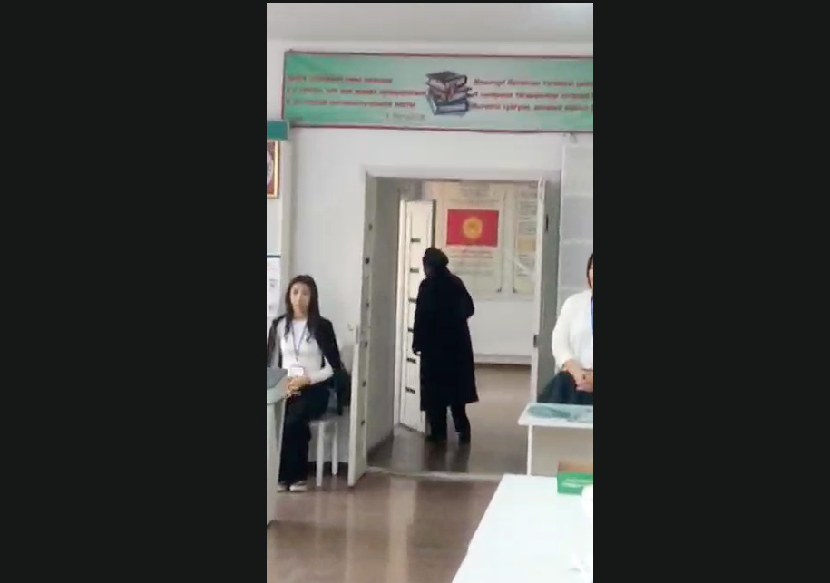 На УИК N7416, СШ Атбашы, с. Манас, зафиксировано нарушение предвыборной агитации. Избиратель пришел в жилетке с фамилией одного из кандидатов, что является агитацией. Однако, согласно закону, предвыборная агитация начинается со дня окончания срока регистрации всех кандидатов и прекращается за 24 часа до начала голосования.
