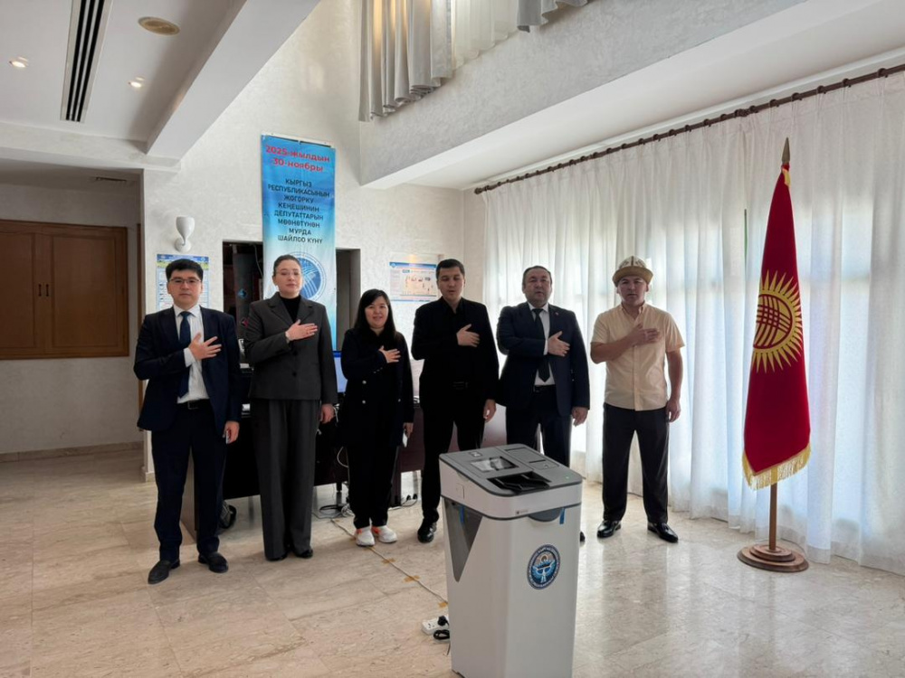 В настоящее время за пределами Кыргызской Республики продолжается голосование на 92 избирательных участках в разных странах мира, включая Россию, Турцию, ОАЭ, Саудовскую Аравию, Великобританию, Венгрию, Германию, Австрию, Чехию, Словакию, Италию, Бельгию, Швейцарию, Францию и другие государства.