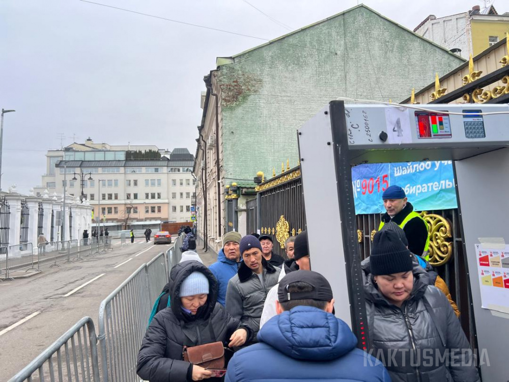 На избирательном участке в Москве, который открылся в 11:00 по бишкекскому времени, очередь из избирателей. Об этом сообщили в МИД.