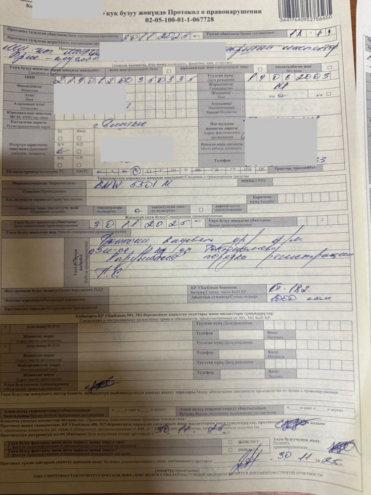 Установлено, что у водителей имелись неоплаченные штрафы, которые были погашены на месте. По факту нарушения водители двух BMW были оштрафованы на 16 тыс. сомов, их авто помещены на штрафстоянку.