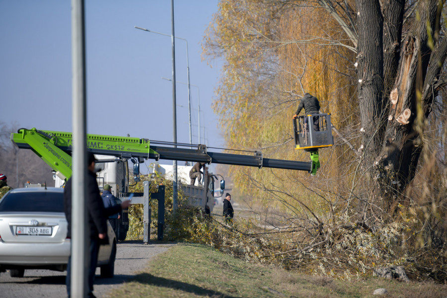 На автодороге Бишкек - аэропорт "Манас" проводится санитарная обрезка деревьев. Проверить ход работ приехал мэр столицы Айбек Джунушалиев, сообщает пресс-служба муниципалитета.