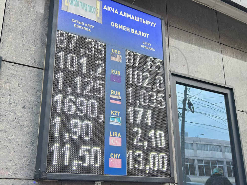 Евро тоже чуть подорожал. Его покупают по 100,6-101,5 сома, а продают - по 101,5-102,2.