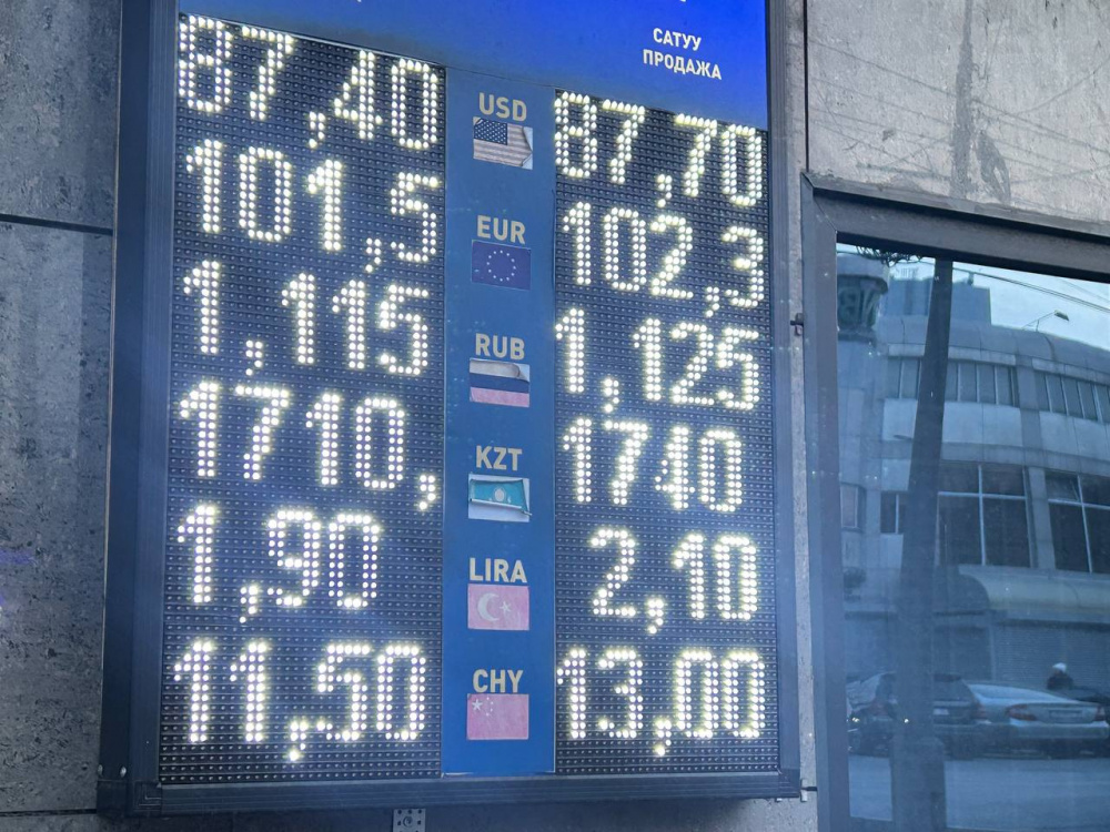 Курс доллара вырос: покупка - по 87,4 сома, продажа - по 87,7.