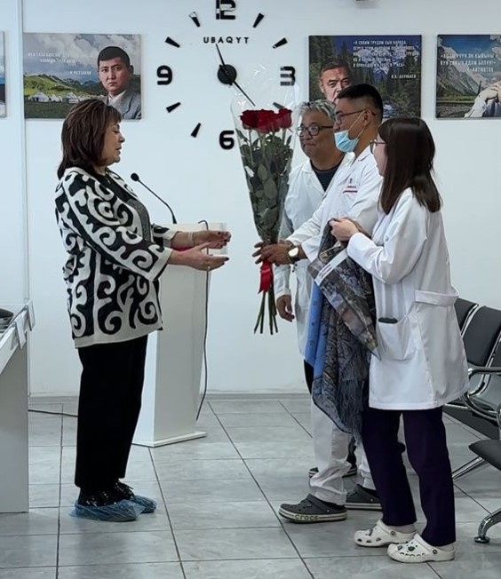 Ключевым событием церемонии стало вручение сертификата на сумму 900 тыс. сомов Национальному центру охраны материнства и детства. Средства направят на закупку препаратов крови, улучшение условий в онкологическом и гематологическом отделениях, установку ограждения для инклюзивной детской площадки, а также монтаж 17 кондиционеров, переданных партнерами фонда.