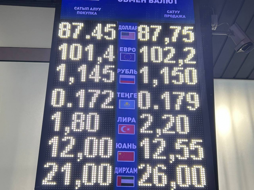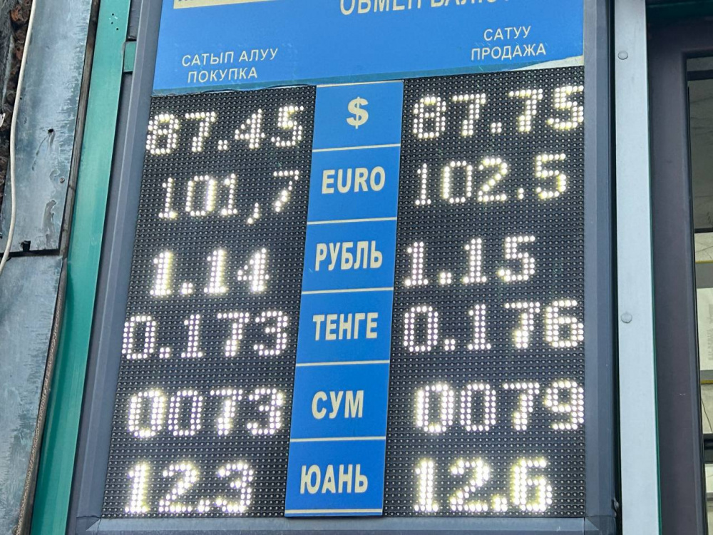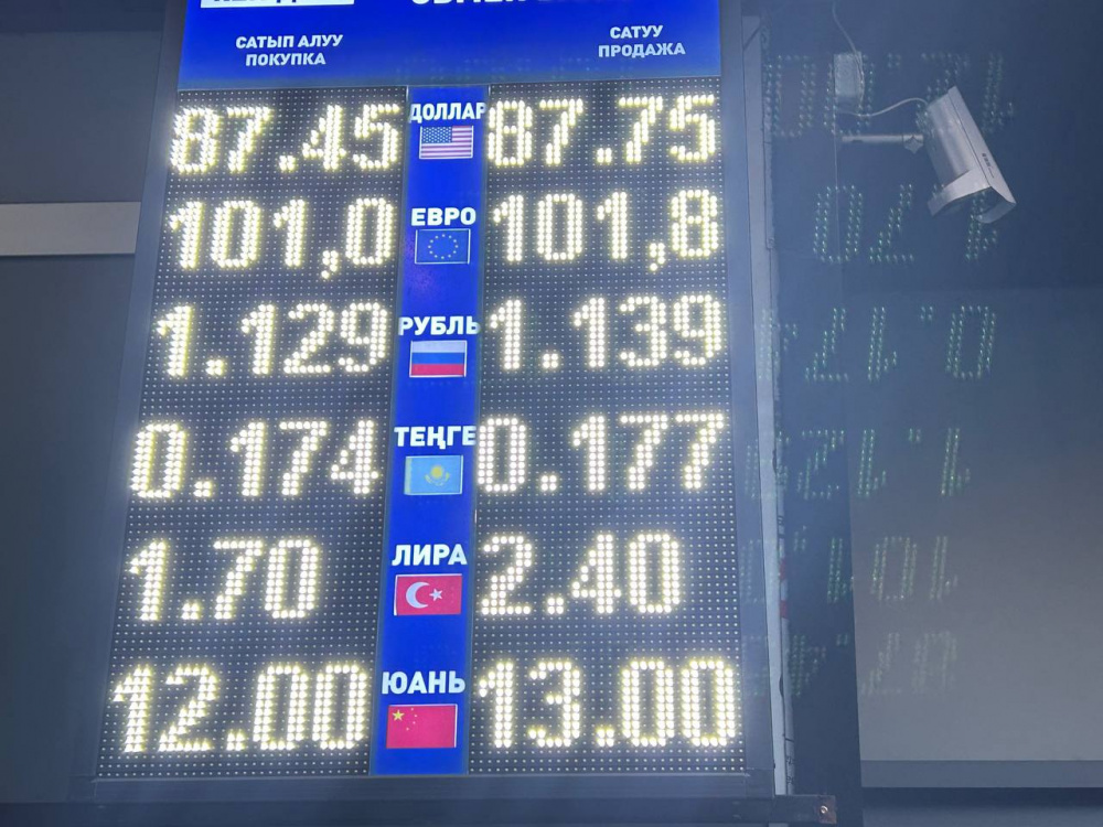Курс доллара вырос: покупка - по 87,45 сома, продажа - по 87,75.