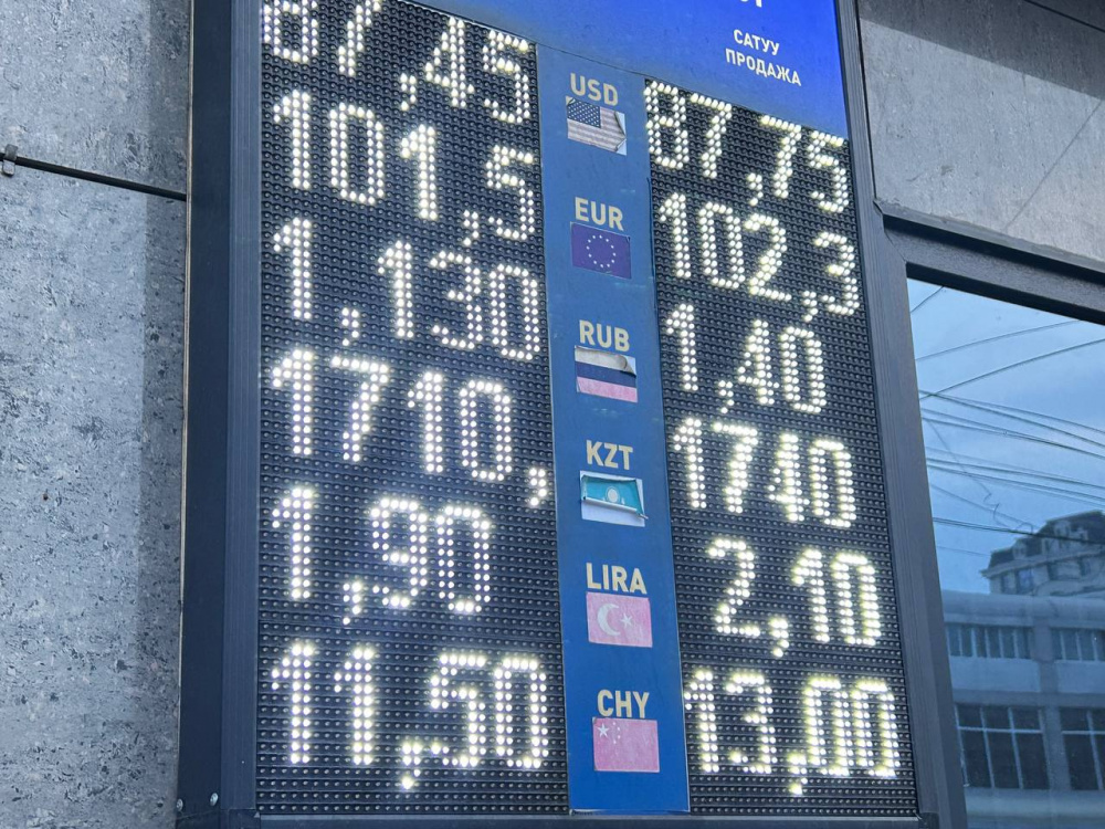 Курс евро также укрепился. Валюту покупают по 100,9-101,7 сома, а продают - по 101,7-102,5.
