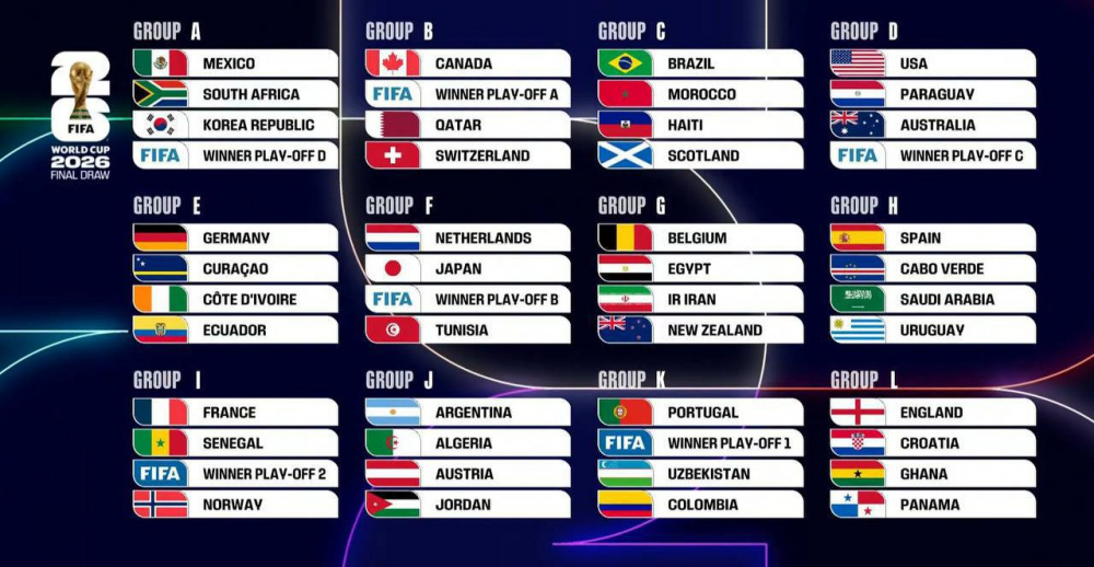 5 декабря состоялась жеребьевка группового этапа чемпионата мира 2026 года, который пройдет сразу в трех странах: США, Канаде и Мексике. В результате жребия стали известны составы групп.