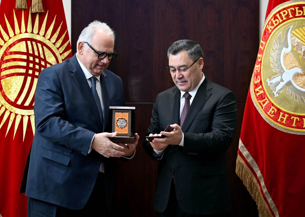 В завершение встречи Садыр Жапаров наградил Ненада Лаловича орденом "Достук", а Мохаммеда Аль-Авамлеха - Почетной грамотой Кыргызской Республики. В ответ Лалович вручил президенту орден UWW.