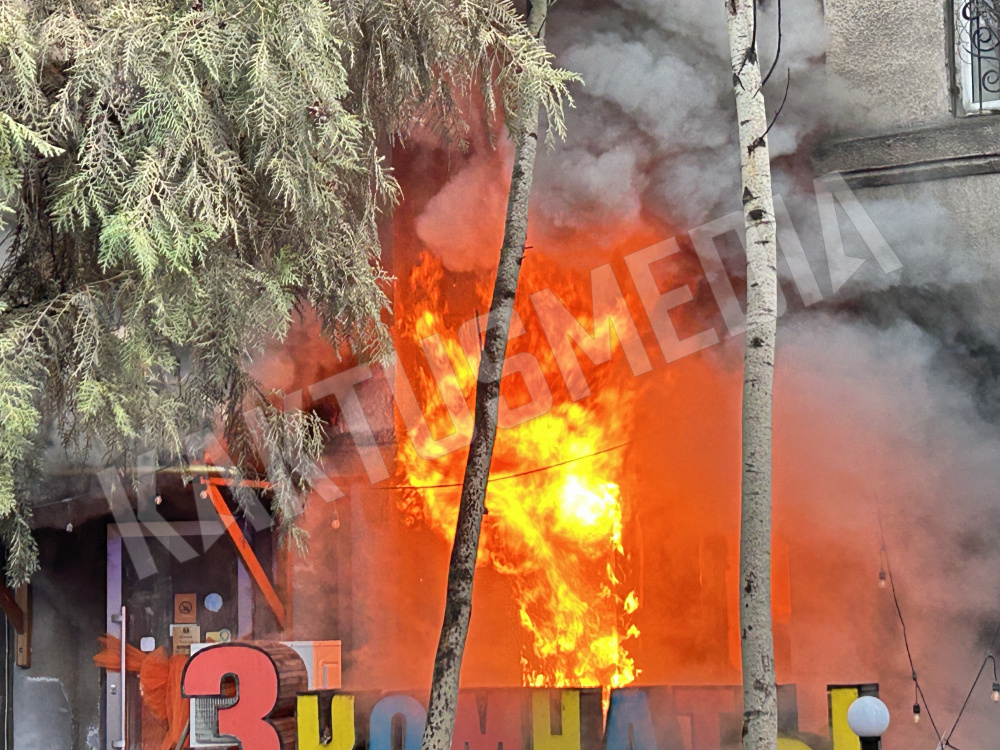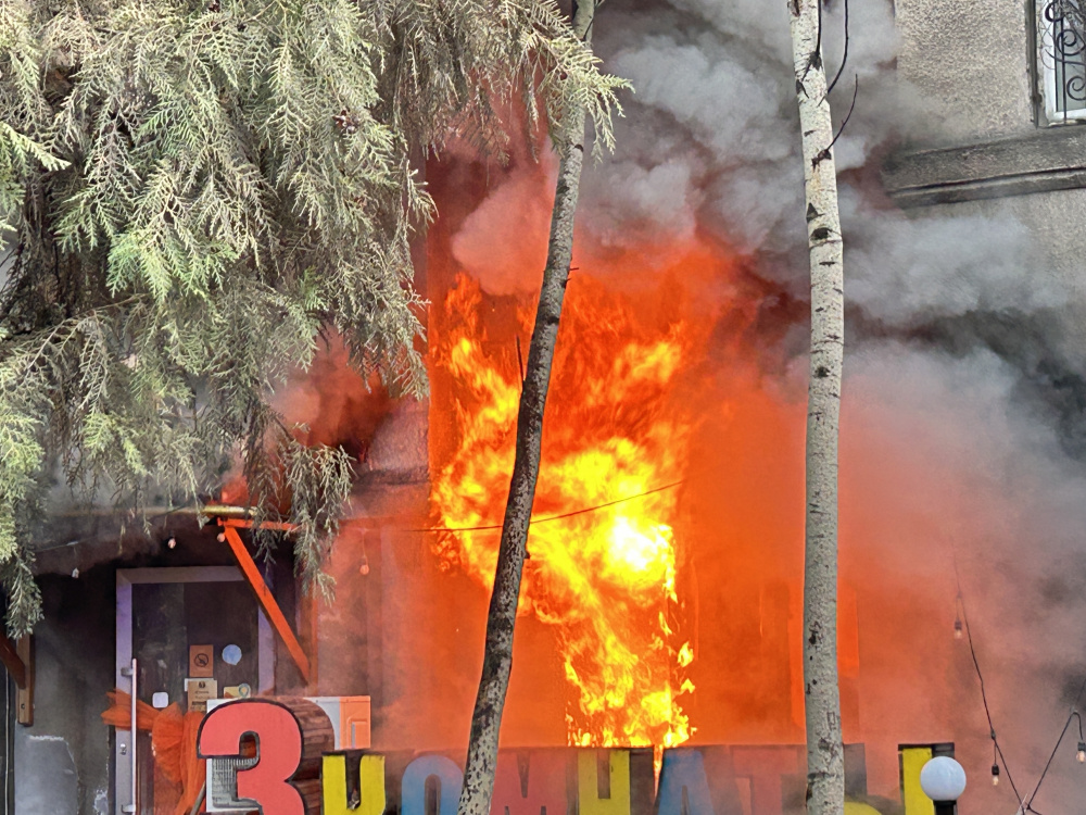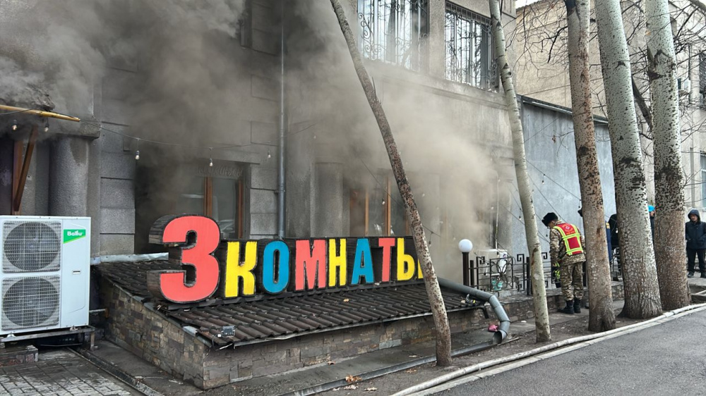 Предположительно, возгорание произошло в кафе "3 комнаты" на пр. Эркиндик, между улицами Московской и Токтогула. Огонь охватил подвальное помещение и первый этаж жилого здания.