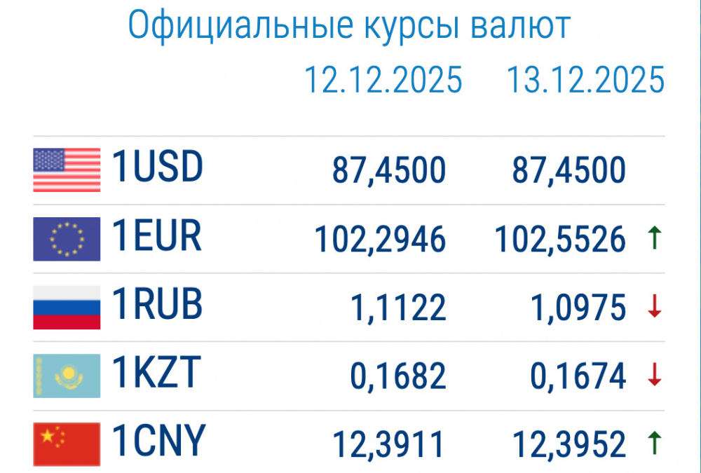 Доллар стабилен - 87,45 сома. Европейская валюта устремилась вверх, а российский рубль ослаб.