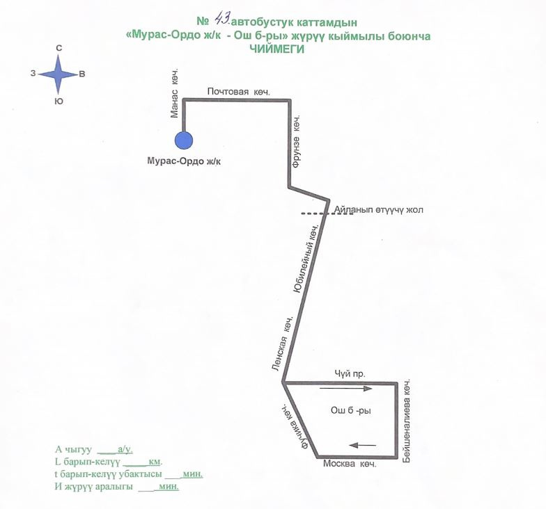 С 15 декабря 2025 года для удобства жителей жилмассива "Мурас-Ордо" введен новый маршрут №43, который будет курсировать до Ошского рынка.