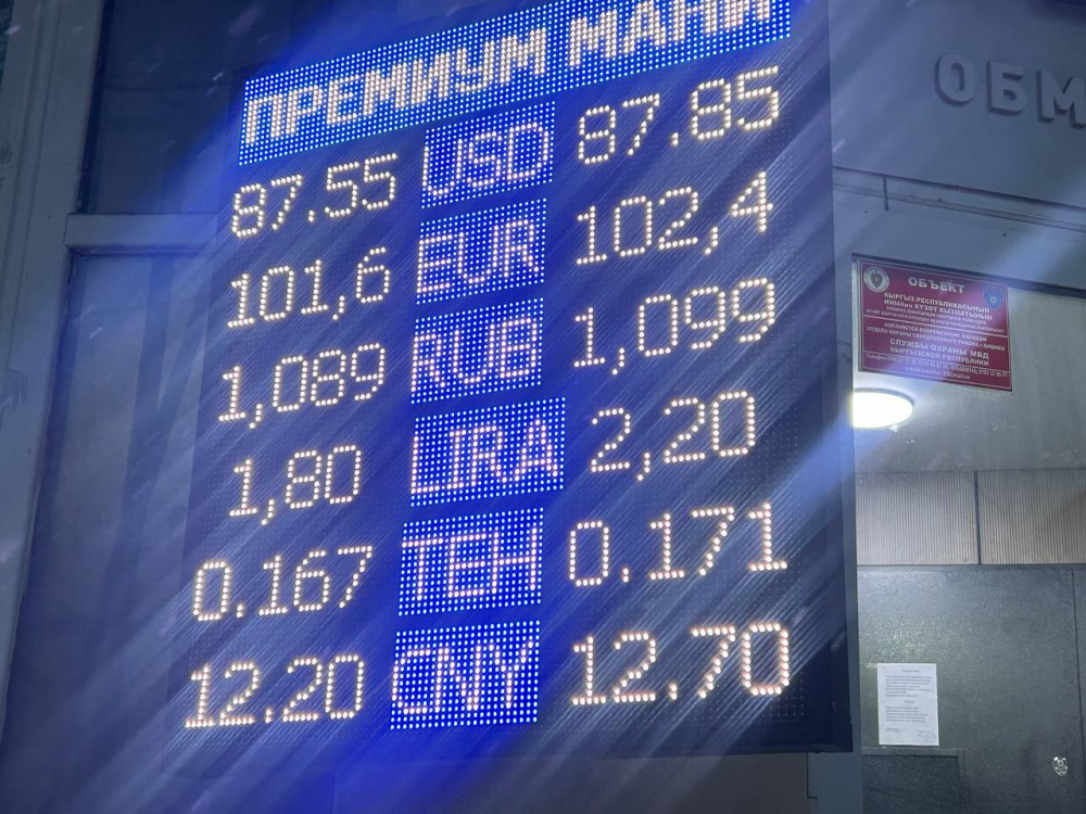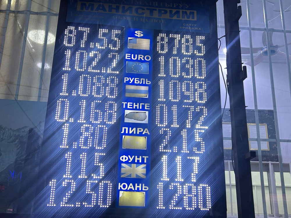 Доллар не поменял стоимости: покупка - по 87,55 сома, продажа - по 87,85.