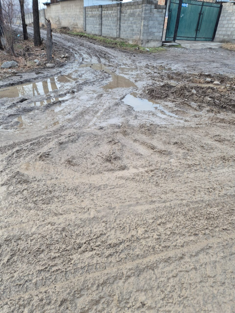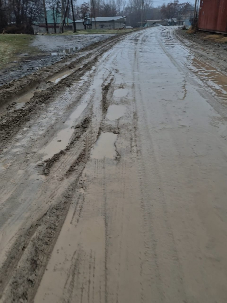 "Перед проведением выборов начали дорожные работы, однако после их завершения работы были брошены и до сих пор не доведены до конца. Теперь дорога находится в ужасном состоянии. Там образовалась глубокая глина, по которой невозможно нормально передвигаться ни пешеходам, ни автотранспорту. Дворы все в глине. В непогоду глина местами по колено, что создает опасность для жителей", - говорят они.